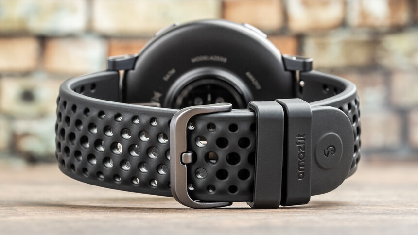 Ca design, nu s-a schimbat mare lucru. Pe bezel, de jur împrejur, găsim o scală de 24 de ore, cureaua este din silicon (22 mm, prindere Quick Release) și are și orificii de aerisire. Apreciez renunțarea la sistemul în care un capăt al curelei era băgat pe sub ea și revenirea la clasic: cataramă și două bucle.