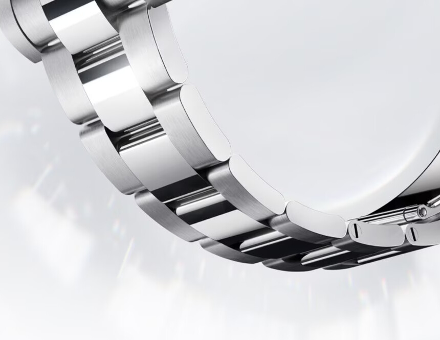 Aspectul brățării cu cinci piese cu verigi este mai elegant decât cel al tipului Oyster. Este, de asemenea, mai confortabil de purtat și mai ușor de ajustat la dimensiunea încheieturii tale. Brățara este dispusă astfel încât verigile laterale mai groase, adesea cu un finisaj mat contrastant, sunt plasate în jurul a trei verigi înguste, foarte lustruite.