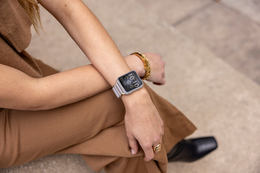 Dimensiunile carcasei sunt de 46 × 41 mm, însă în ceea ce privește grosimea se află la polul opus al extremelor – aceasta este de doar 7,9 mm. Pentru o reprezentare mai clară, imaginează-ți trei monede de 50 de bani puse una peste alta.