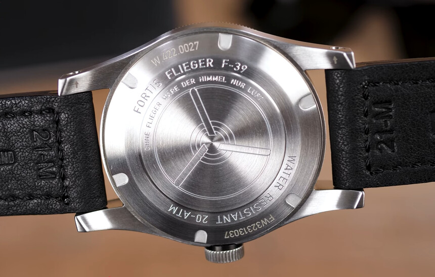 Un detaliu frumos este ascuns și pe fundul ceasului. Aici, Fortis a plasat motivul unor pale de avion care se învârt și inscripția „Ohne Flieger wäre der Himmel nur Luft” – adică, tradus prin "Fără aviatori, cerul nu ar fi decât aer". Toate acestea aduc întregul ceas la o încheiere simbolică, amintindu-ne de originea și scopul său: să fie un instrument pentru cei care privesc lumea de sus.