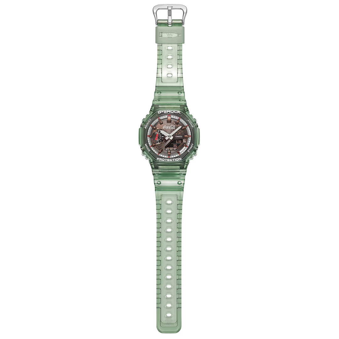 Datorită utilizării fibrei de carbon (Carbon Core Guard), ceasul este extrem de ușor, iar mecanismul intern a fost încadrat într-o carcasă cu o grosime de doar 11,8 mm, ceea ce face din modelul GA-2100, probabil, cel mai subțire G-Shock de până acum. Diametrul carcasei poate fi considerat „sub medie” (în universul G-Shock), dar tocmai acest lucru îl face potrivit și pentru încheieturi mai subțiri, fiind ușor de ascuns sub manșetă.