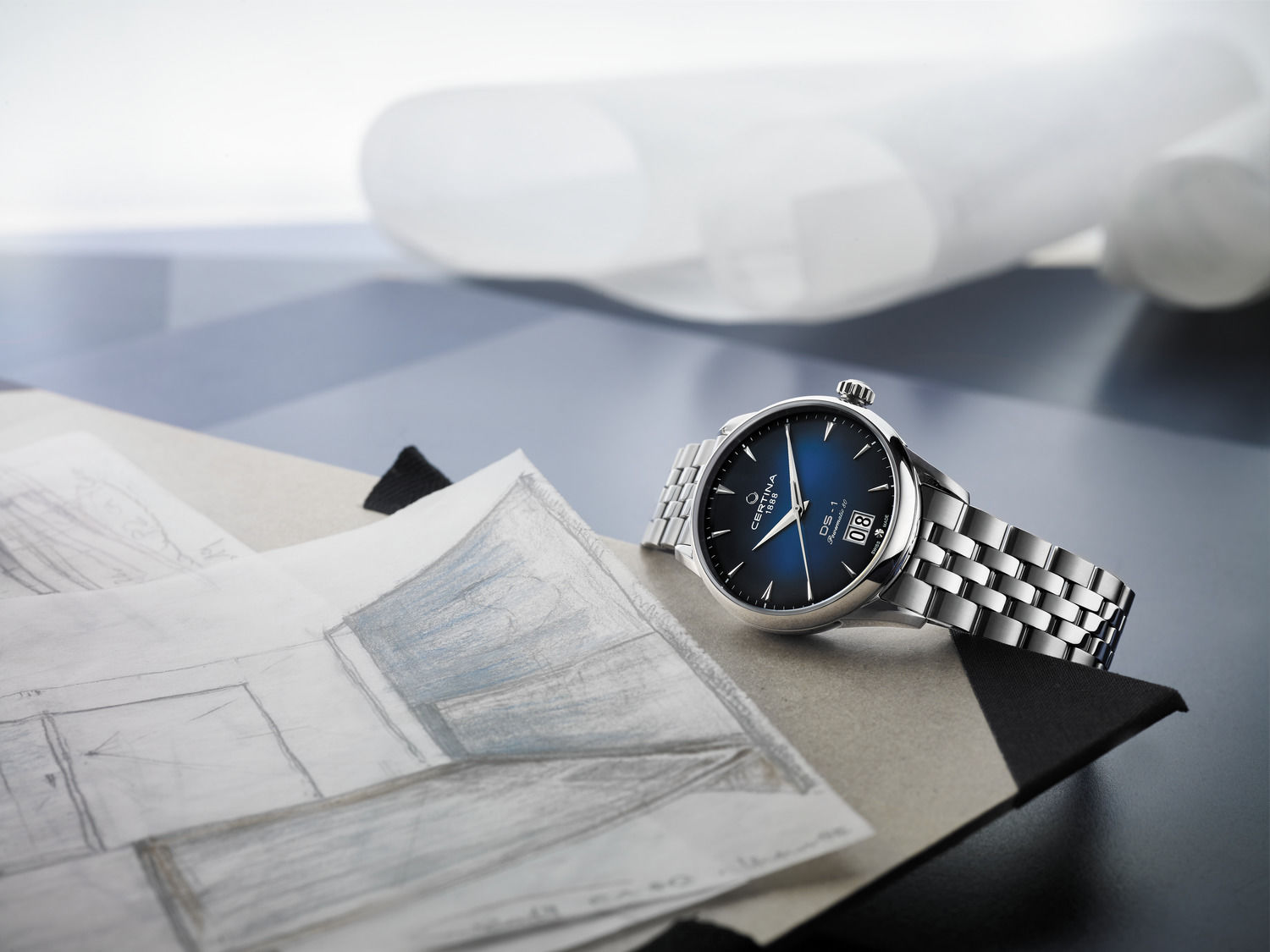 Caracteristica dominantă a cadranului este efectul ombré (culoarea care se transformă în negru pe margini) și un indicator mare de dată în poziția a 6-a.