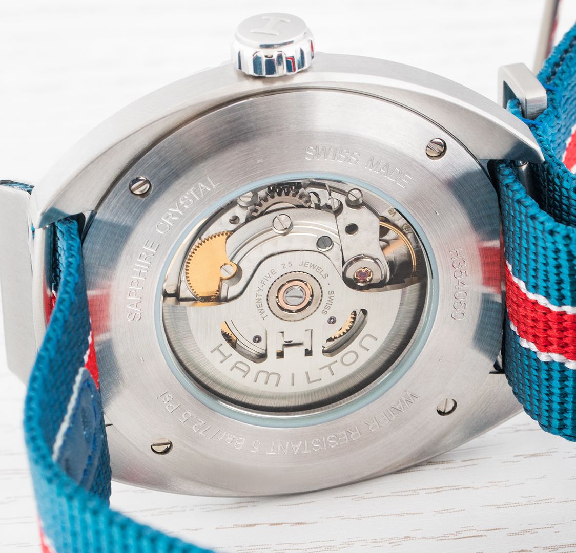 Mecanic cu înfășurare automată. Hamilton H-30 construit pe ETA C07.111 construit pe ETA 2824-2, Rezerva de funcționare 80h, 21.600 BPH (3Hz), 25 pietre, Hacking, Posibilitatea de încărcare manuală