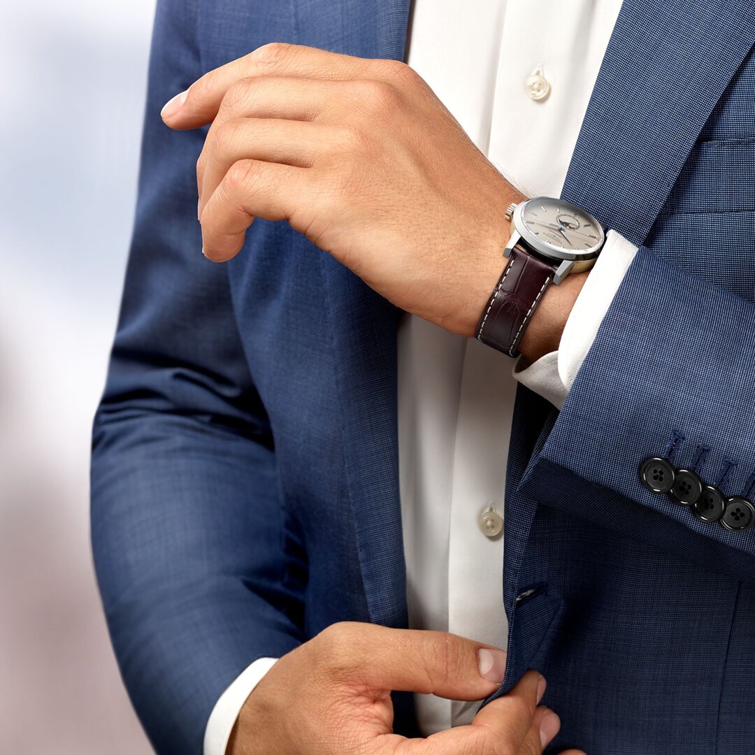 Ceas bărbați - curea piele, carcasă oţel, geam safir. Toate specificațiile tehnice se găsesc mai jos