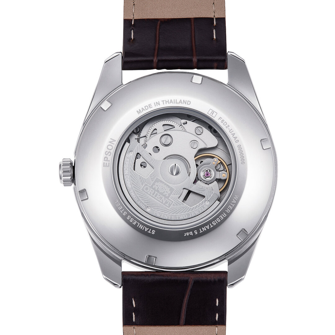 Mecanic cu înfășurare automată. Orient F6D22, Rezerva de funcționare 40h, 21.600 BPH (3Hz), 22 pietre, Hacking, Posibilitatea de încărcare manuală