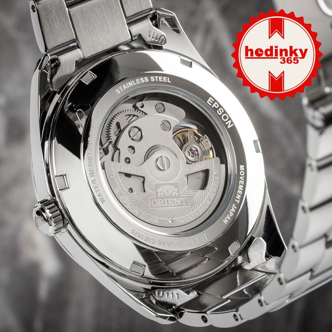 Mecanic cu înfășurare automată. Orient F6S22, Rezerva de funcționare 40h, 21.600 BPH (3Hz), 24 pietre