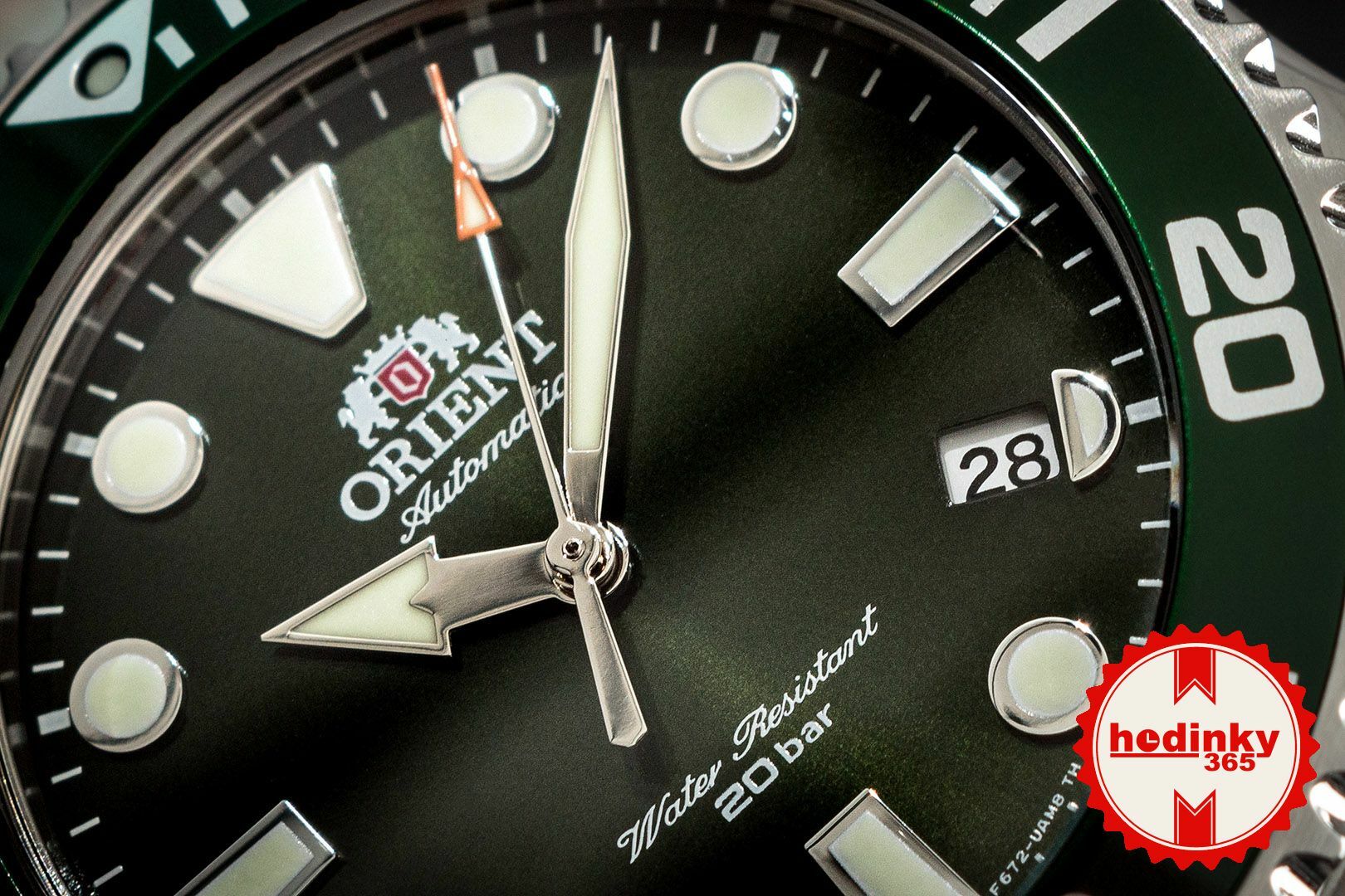 Mecanic cu înfășurare automată. Orient F6722, Rezerva de funcționare 40h, 21.600 BPH (3Hz), 22 pietre, Hacking, Posibilitatea de încărcare manuală