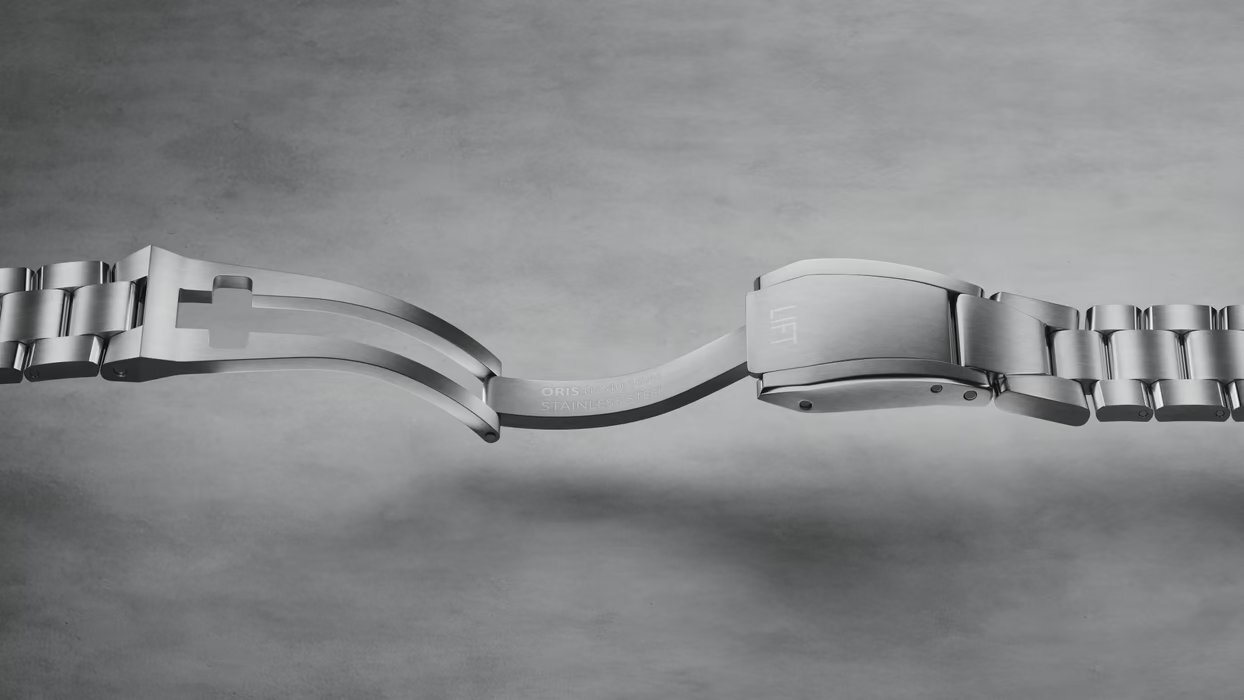 Mecanic cu înfășurare automată. Oris 733-1 construit pe Sellita SW 200-1, Rezerva de funcționare 41h, 28.800 BPH (4Hz), 26 pietre, Hacking, Brățară reversibilă