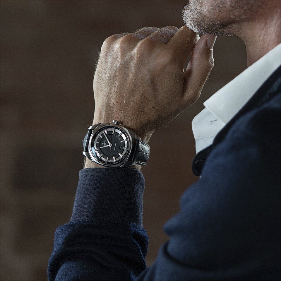Ceas bărbați - curea piele, carcasă oţel, geam safir. Toate specificațiile tehnice se găsesc mai jos