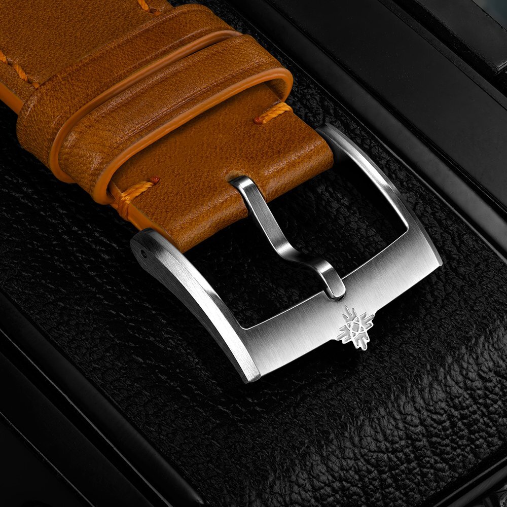Ceas bărbați - curea piele, carcasă oţel, sticlă safir. Toti parametrii tehnici pot fi găsiți mai jos