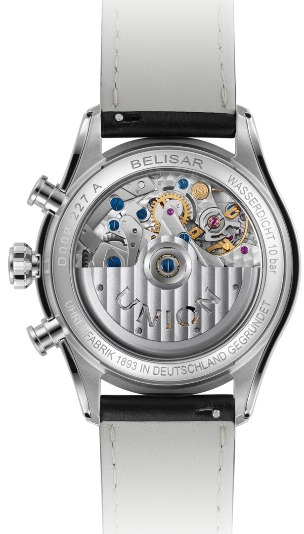 Mecanic cu înfășurare automată. Union Glashütte UNG-27.S1 construit pe ETA/Valjoux 7753 construit pe ETA/Valjoux 7750, Rezerva de funcționare 65h, 28.800 BPH (4Hz), 29 pietre, Hacking, Posibilitatea de încărcare manuală